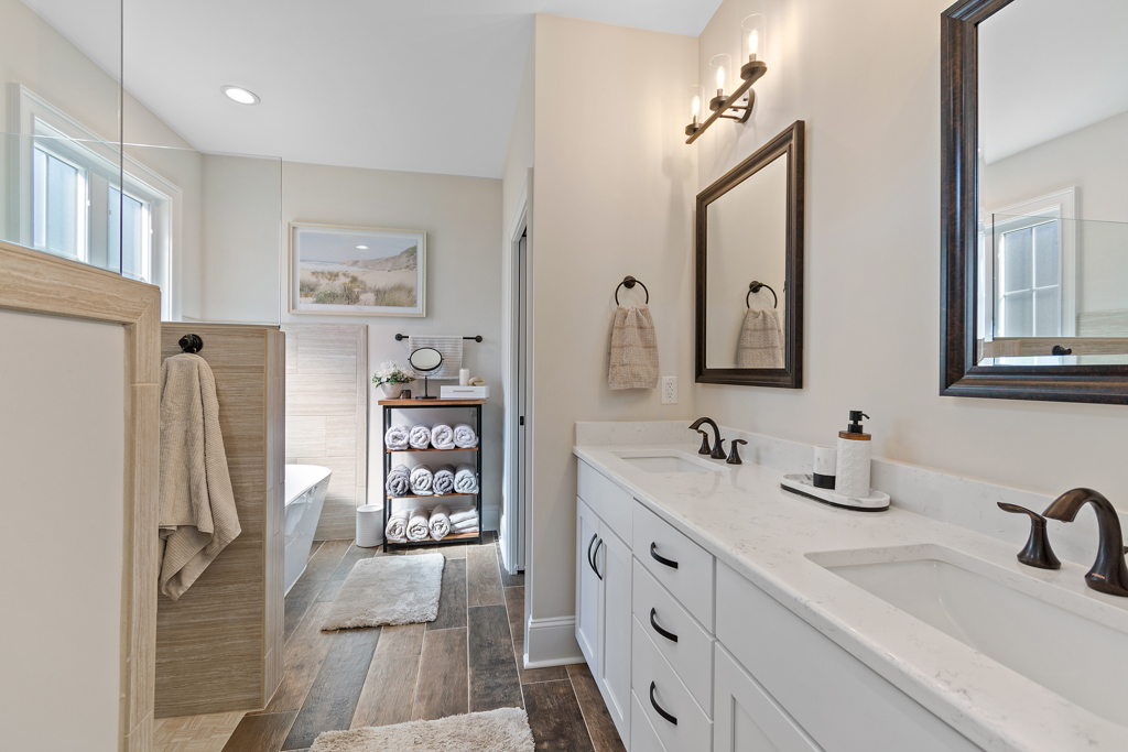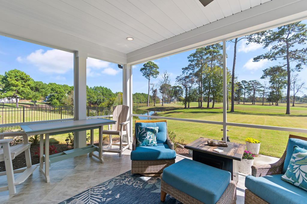 Guests and owners can maintain their privacy with this functional split floor plan. The primary suite is your retreat at the end of the day with a beautiful view, double-tray ceilings with LED rope lighting and a spa-like ensuite. Dual vanities, a generous tiled shower, freestanding tub and water closet with pocket door contribute to the luxurious feel of this space. The primary closet contains a custom closet system with drawers, hanging space and shelving as well. The laundry room is amazing, having been enlarged and rearranged to create a pleasant and functional space, containing a barn door entry, drop zone and storage cubbies. Whether it be a guest suite, exercise room or recreation space, the bonus room with full bathroom can be used however you like. The enlarged garage boasts epoxy flooring, a pedestrian door, storage nook, the tankless water heater and is pre-wired for an electric car charger. Imagine yourself enjoying time on the huge screened porch and extended patio, enjoying the golf and pond views.