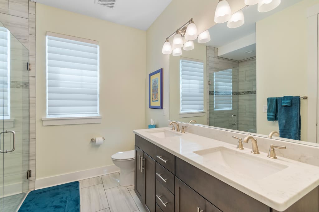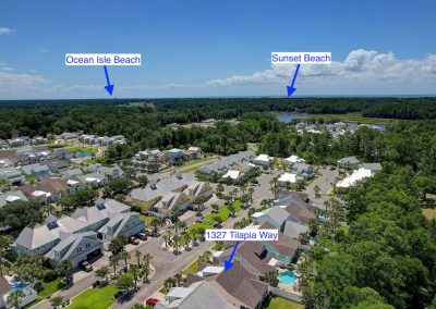 The bathroom contains dual vanities also with quartz counters, a tiled walk-in shower and walk-in closet. Upstairs your guests can have their own privacy, with two guest bedrooms, a full bathroom, and a loft area for additional living space. There is literally nothing to do in this home as it is ready for new owners. The amenities at Kingfish Bay include a beautiful clubhouse, fitness room, resort-like community pool, private beach house and parking lot at Sunset Beach, a waterfront park along the Calabash River within the community, and two piers. The gated community offers the feeling of additional security, particularly if this is going to be a secondary home. This location could not be any more ideal, literally right down the street from the town area of Calabash, well known for its seafood restaurants and shopping. The pristine sands of Sunset Beach are approximately 10 minutes away, with additional beaches of Ocean Isle and Cherry Grove also nearby. If you are a golfer, there are many courses within a 15-minute radius, and more beyond that. You are right between the Myrtle Beach and Wilmington areas here, so a day trip or flight in or out of either is very easy.