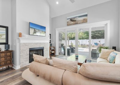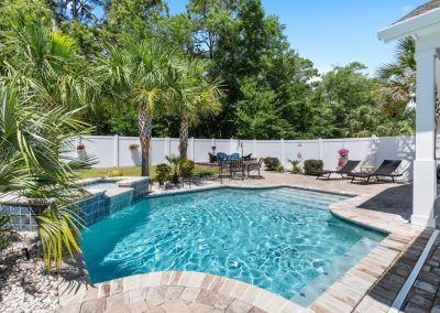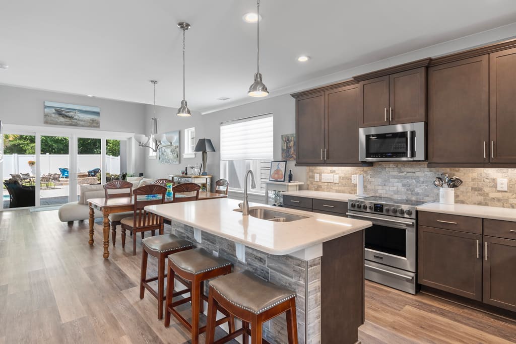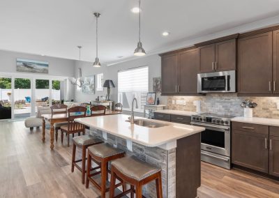 This beautiful 3 BR, 2 ½ bathroom home with one-car garage possesses perhaps the best outdoor space you have ever seen. With an open and airy floor plan, you will enjoy the well thought-out space in this home. The kitchen boasts an island with tiled face and bar-height seating. Quartz countertops, stone backsplash, and stainless steel appliances create a polished look. The dining area is adjacent to both the kitchen and living room, making it an excellent setup for entertaining. The living room boasts a vaulted ceiling and fireplace with stone surround. LVP adorns most of the home, with tile in the bathrooms and laundry room. The massive sliders offer a fantastic view of the lush, and resort-like backyard. A generous covered porch looks out on a pool with hot tub, gracious paver patio and firepit area. The landscaping and hardscaping are extremely well done and complement the space perfectly. The primary suite, located on the first floor, contains plenty of room for traditional bedroom furniture.