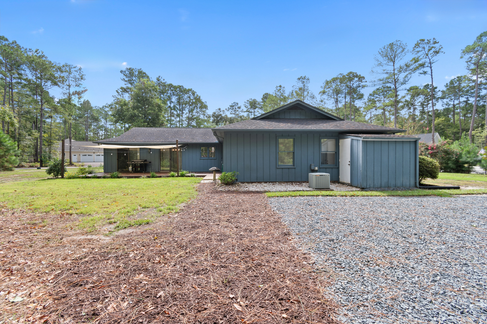 This well-built home, situated on a private .63 acres in the conveniently located and charming neighborhood of Carolina Shores North is ready for a new owner! If you are searching for some elbow room where you may have a little more freedom than most HOA communities, then this gem is for you! This single-story home offers three bedrooms, two separate dining areas, and a large additional room that would be a fantastic office, exercise room, or large utility room. The split floor plan allows privacy for the primary bedroom, with the additional bedrooms on the other side of the home. The centrally-located kitchen boasts a breakfast bar, and is adjacent to both dining areas. The spacious deck is accessible through sliding doors both in the living room and dining room, creating great space for entertaining or cooking out. Storage in the home includes multiple closets, pull-down stairs to access the attic storage above the garage, and a shed in the rear that is attached to the home. Utility bills will be at a minimum as this home has its own well and septic. There is also a whole-house Kinetico water softening system. The property also boasts two mature pecan trees and a mature fig tree that is very productive! This location could not be any more convenient, just a stone’s throw from the town area of Calabash with its seafood restaurants and shopping. For more recreation or other opportunities, there are three beaches nearby, along with access to the ICW for boating or fishing and the Myrtle Beach area is an easy drive. What are you waiting for? Schedule your showing today!