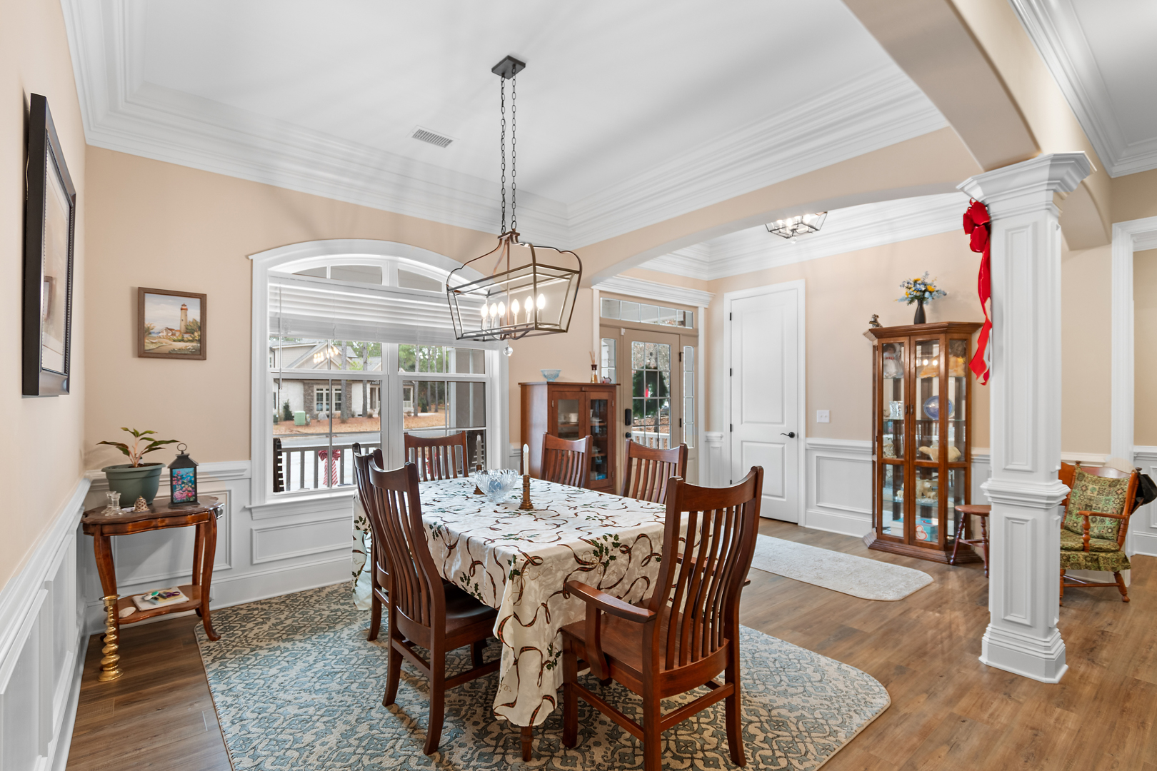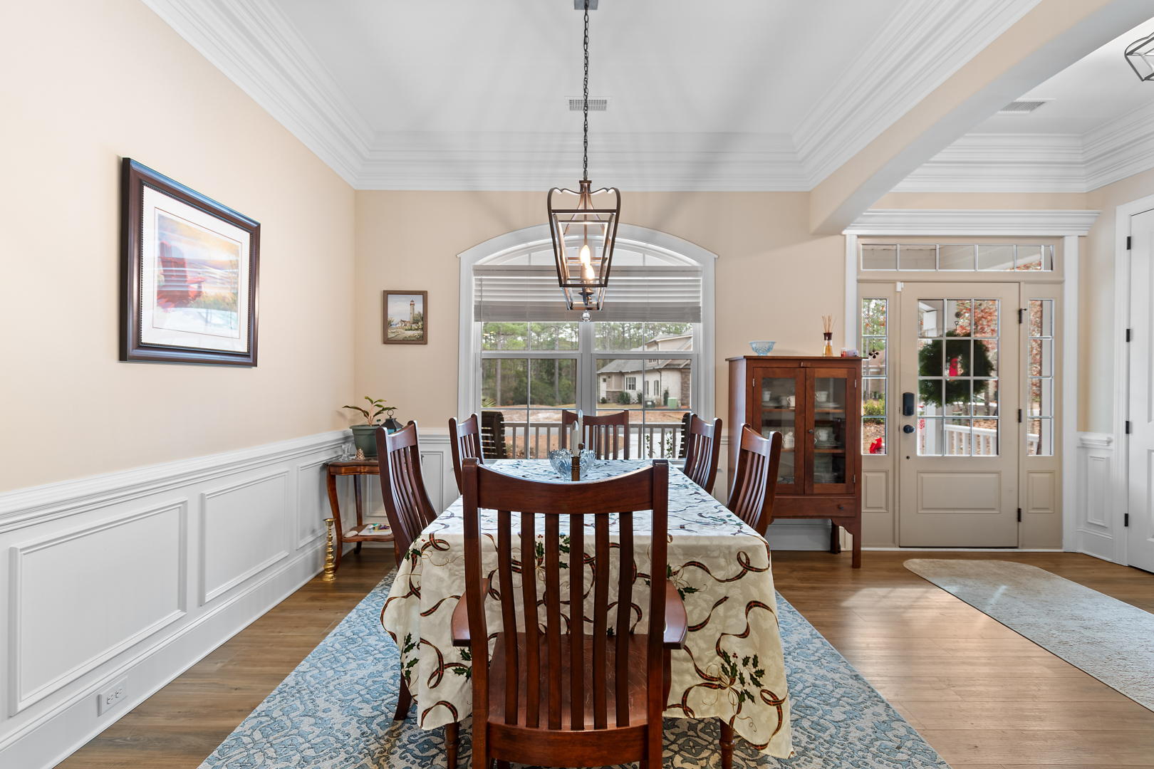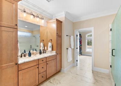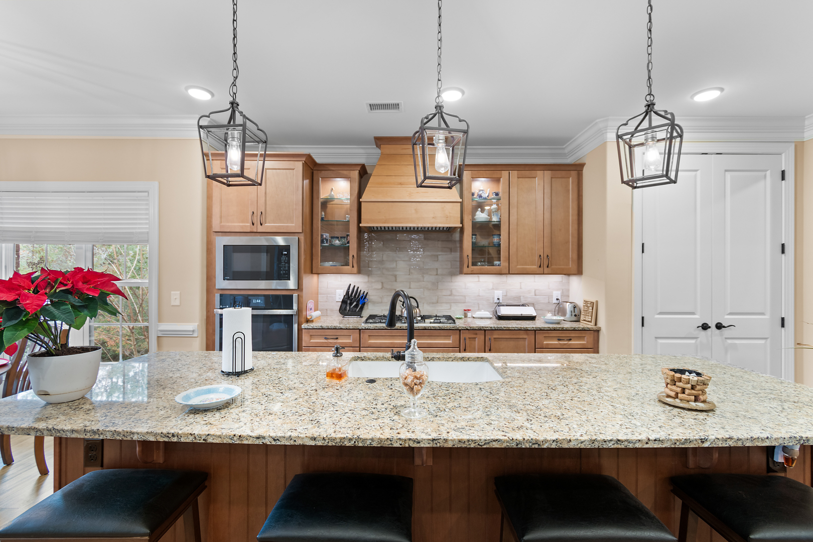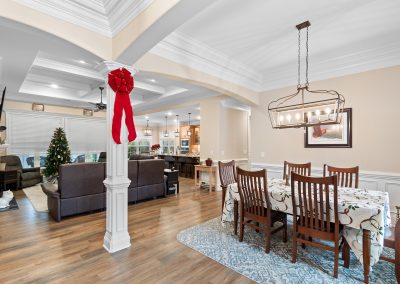This stunning, custom-built home by Douglas Builders is ready for a new set of owners. With extremely comfortable living space and several nice extras, this is a well thought out floor plan. The spacious living room is open to the dining room and kitchen, making this a fantastic house for entertaining. A designated wet bar area with beverage cooler is adjacent to the living and dining area also. The living room boasts double crown molding, coffered ceiling and a stone fireplace wall with built-ins. The kitchen is a cook’s dream with large island, wall oven/microwave combo, pantry, gas cooktop and custom vented hood. A powder room off the living room for guests is another thoughtful touch.
